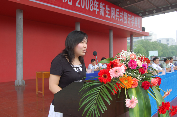 此外,学院党委副书记汪邦柱同志作了军训工作总结和入学教育动员报告。教师代表杨杨老师、新生代表张宏也分别在典礼上发言。