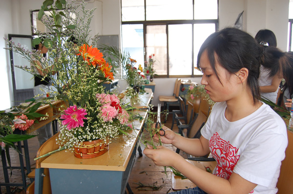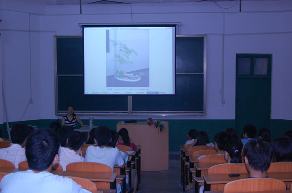 在正式的插花比赛开始之前,一场关于插花知识的讲座于5月24日晚7点在2—203教室举行,长江大学李秋杰副教授担任主讲,近百名插花爱好者参加了此次讲座。讲座开始,李老师亲切的话语立刻拉近了她与同学们的距离,让人感受到她并不是一位老师,而更像是一位向大家传授插花经验的学长。李老师在讲座上向大家展示了“春花秋实”、“展望未来”、“鸭子闹春”、“爱在深秋”等多个优秀作品,让在场的同学充分的体验到了插花艺术的魅力。除了增强同学们对插花的热情和兴趣外,李老师还就插花的一些专业知识进行了讲解。她向大家重点指出了在插花过程中所要注意的几个问题,首先插花要注意装饰的环境,让插出来的花能融入到周围的事物当中去,然后就要注意花的尺寸,接着就是看要选择什么样的花材,才能让插出来的花别具一格。其次,插花就是讲究美,而其造型的设计将决定插花作品的优劣,挑选一个合适的器皿对插花的整体效果也有着重要的影响。通过李老师耐心的讲解之后,同学们对插花有了进一步的了解和认识。