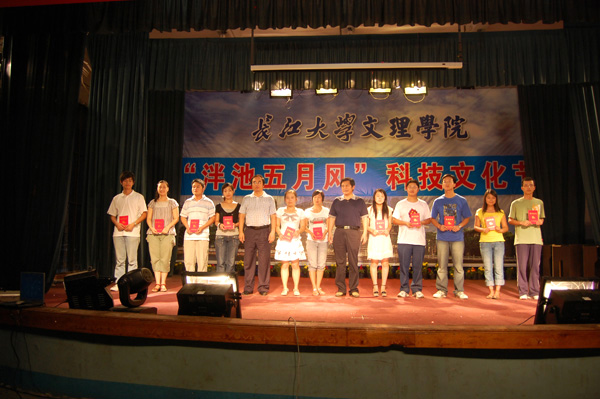 晚会上,院长沈光明、书记董武、副书记汪邦柱、学工处主任彭中分别给在此次科技文化节的各项比赛中获得优异成绩的单位和个人颁发了证书。