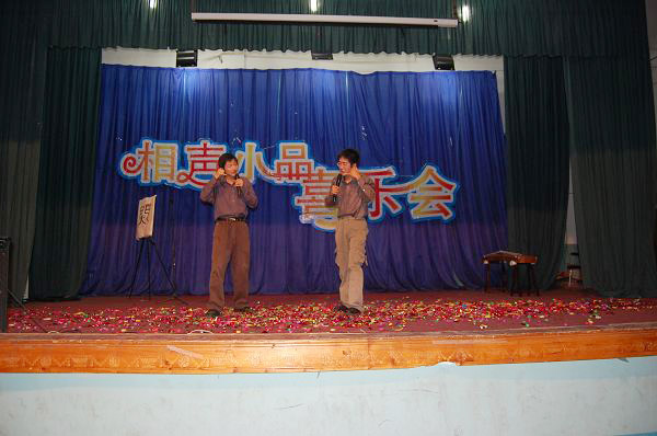 (大学生记者: 解晓倩)5月28日晚7时,由人文学部承办,曲艺协会协办的“相声小品喜乐会”在学院食堂三楼拉开序幕。院长沈光明、副书记汪邦柱、学工处主任彭中、人文学部主任李成军出席,相关老师和八百余名学生一起观看了本次晚会。