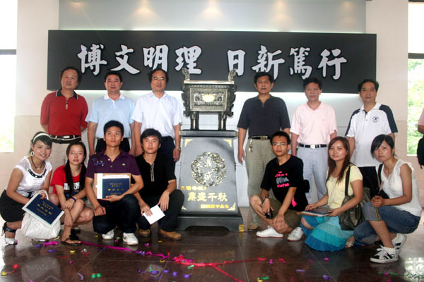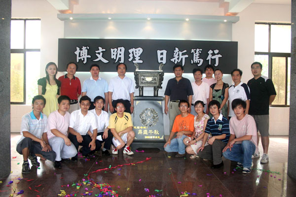 之后,学院院长沈光明与书记董武一同为“方鼎”揭幕,这一刻,瞬间点燃了毕业生们无限的激情。现场毕业生们纷纷表示,他们的成长离不开领导的关怀、老师的鼓励,是学院让他们在走向社会的道路上充满了自信。最后,揭幕仪式在学院领导与08届毕业生亲切的合影留恋中结束。