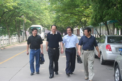 6月21日上午,湖北省教育厅发展规划处丁雪峰处长莅临我院检查指导工作。在学院领导沈光明、董武、汪邦柱的陪同下,丁处长先后察看了我院新扩建的运动场、学生公寓、图书馆等教学设施,对学院完备的教学设施、浓厚的校园文化氛围和良好的学习环境给予了充分肯定。
