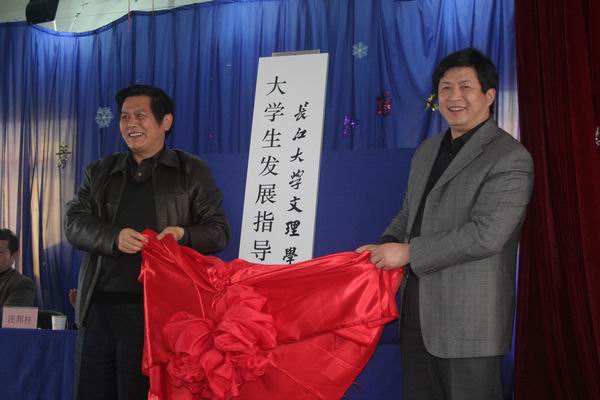 长江大学学生事务处处长李师东、学院书记董武为大学生发展指导中心揭牌