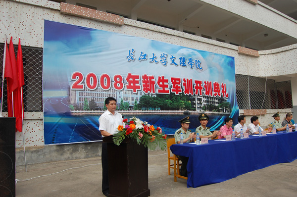 (大学生记者:金敏)9月8日下午,学院全体08级新生在西校区运动场隆重举行了2008年新生军训开训典礼。学院各级领导、长江大学军训师参谋长赵国强少校、长江大学学工处副处长杨克非出席了此次典礼。典礼由学院基础学部主任史千里主持。