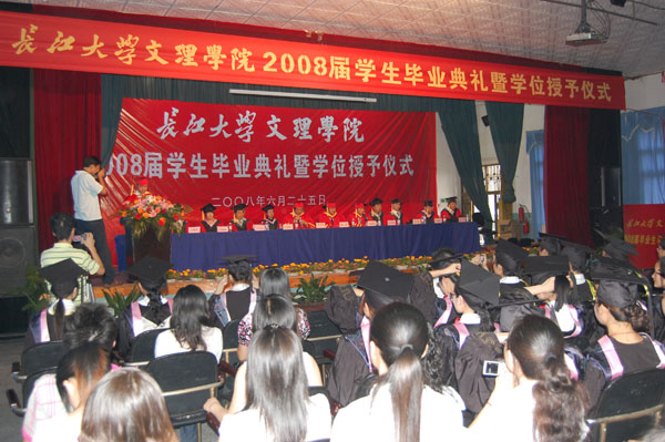 (大学生记者:黄小明、金敏)6月25日上午,学院2008届学生毕业典礼暨学位授予仪式在工会三楼大礼堂拉开帷幕。学院主要领导、各学部主任、各部门主要负责人、毕业班辅导员、全体毕业生参加了此次典礼,大会由副院长王金琼同志主持。