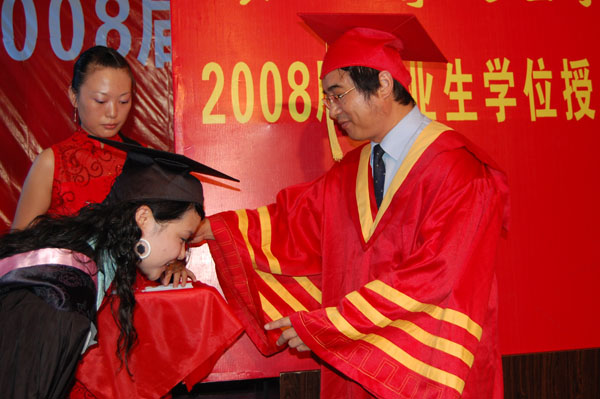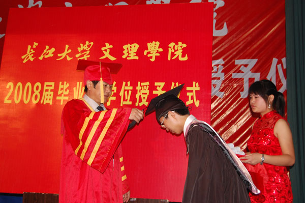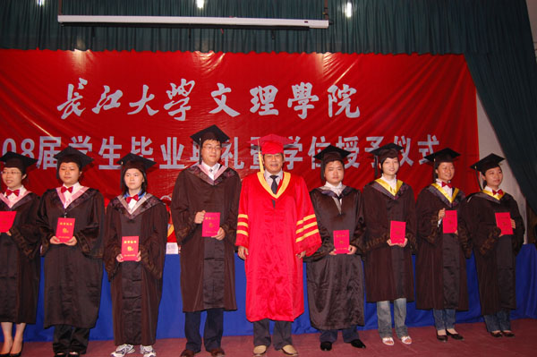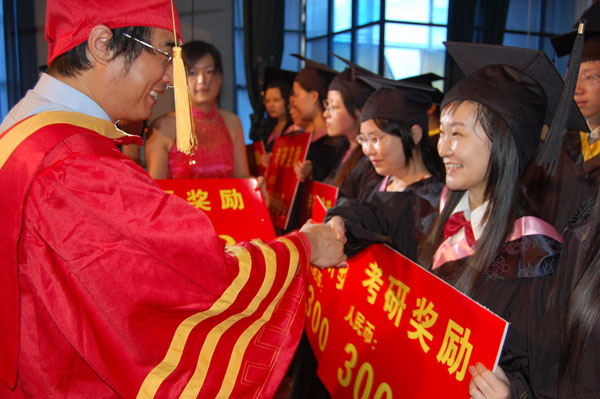 之后,在大家热烈的掌声和欢快激进的乐曲中,学院院长沈光明和书记董武分别学院2008届优秀毕业生颁发了荣誉证书、为考取2008年硕士研究生的同学颁发了考研奖励。