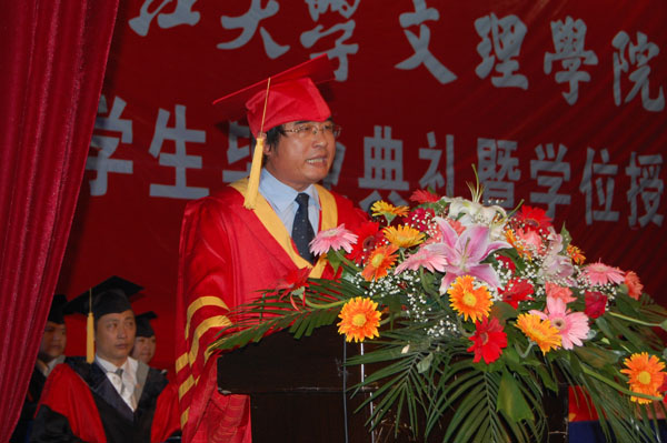 在庄严的国歌声中,王金琼副院长宣布毕业典礼暨学位授予仪式正式开始。随后,汪邦柱副书记宣读了《关于准予江迈等1275名2008届普通本专科生毕业的决定》、《关于表彰2008届137名优秀毕业生的决定》、《关于对考取2008年硕士研究生的同学予以表彰奖励的决定》等三个学院文件。同时希望在校生能以他们为榜样,努力学习;希望毕业生能继续保持刻苦奋斗的精神,为祖国贡献自己的聪明才智。