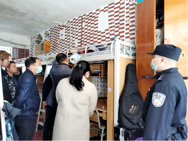 在安全保卫处,民警重点检查了消防安全设备是否配备齐全,摆放有序,并提醒工作人员要加强监管,将校园安全工作落到实处。