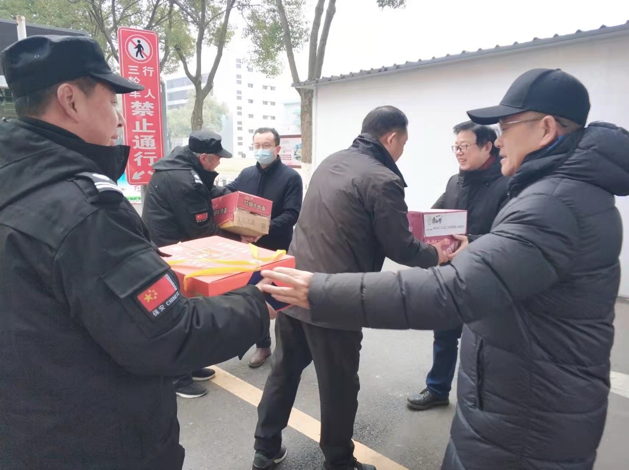 本网讯(通讯员 邓士明)辞别旧岁迎新春,万家欢聚人团圆。1月31日农历除夕上午,院长王文凯、党委书记朱继平、副院长尹家经、院长助理郭明虎与学院相关部门主要负责人一行前往城中校区、西校区看望慰问春节期间坚守岗位的值班工作人员,并为他们送上新春祝福和亲切问候。