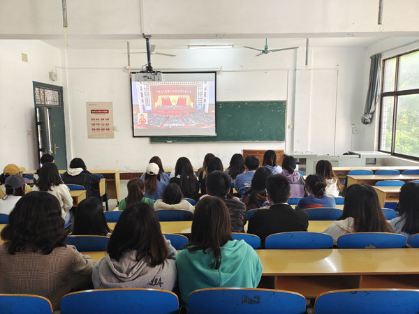 人文与传媒学院学生集中观看比赛视频