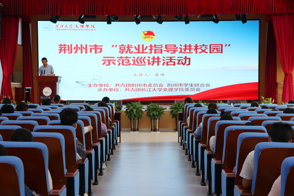 本网讯 为进一步助力我市青年大学生树立正确就业观念,提升就业技能,5月12日下午,团市委在我院多功能报告厅举办2022年“就业指导进校园”巡讲活动。团市委副书记谭亮魁,长江大学电信学院团委书记、系统分析师康玮副教授,团市委学校部负责人郭灵芝,学院团委200余名师生代表参加活动,院团委书记陈海波主持活动。