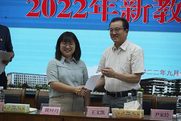 会上,院长王文凯对新教师的到来表示热烈欢迎,简要介绍了学院发展历程后,他希望新老师能尽快融入文理学院大家庭,为推动学院教育教学质量和内涵建设发挥聪明才智,争做教书育人的典范。