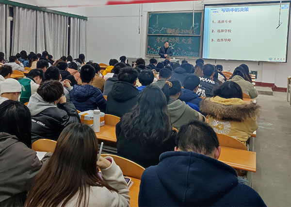 本网讯 3月1日晚,数学与医护系2020级考研动员大会在西校区举行,长江大学信息与数学院副院长李治为百余名学子解疑释惑。