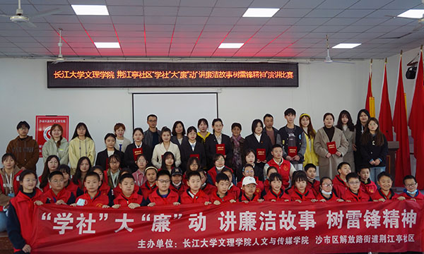本网讯 3月5日上午,人文与传媒学院联合解放街道荆江亭社区成功举办“讲廉洁故事树雷锋精神”主题演讲比赛。该院青年志愿者、荆江亭社区党员群众和田家炳中学小学部的学生共100余人参加。