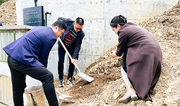 座谈会后,大家一起来到白石湾处。在热烈的掌声中,王文凯和刘旻共同为我院捐建饮水工程项目揭牌,该项目是学院全额投资推动石柱山村水源修复及管网整治工程项目,解决了困扰群众多年的季节性缺水问题。揭牌活动过后,与会人员一起参加了植树活动,以实际行动助力乡村振兴添绿添美。