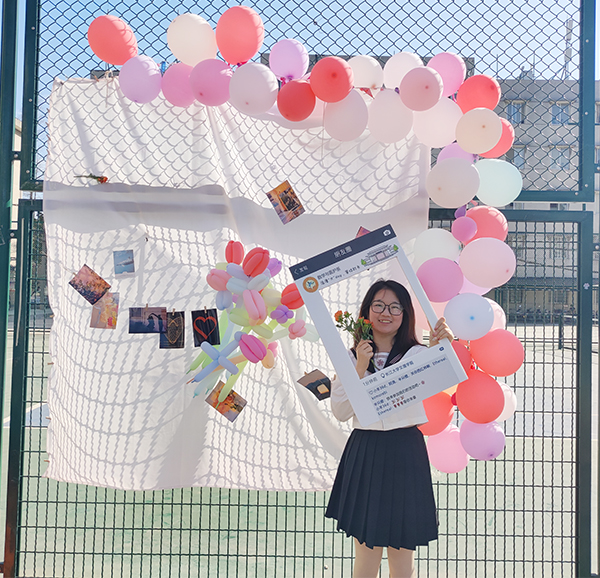 活动现场,同学们可以在π中找到属于自己的数字,写下自己认为最有意义的事进行分享,或者在布置好的漂亮场景“π”下进行拍照后发到朋友圈或者QQ空间,参加任意一个活动都能领到鲜花或气球。现场活动气氛热烈,吸引了数百名师生参加。