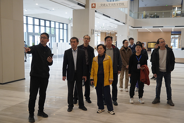 馆长让华详细介绍了新馆建设的理念,并从结构框架、基础空间、空间排布、家具配置、设备配置等方面进行了详细阐述,大家来到图书馆一楼大厅参观瀑布流电子借阅机、智慧书柜、党建有声墙、党建云学习共享空间等,纷纷为我院新图书馆的人性化设计点赞。