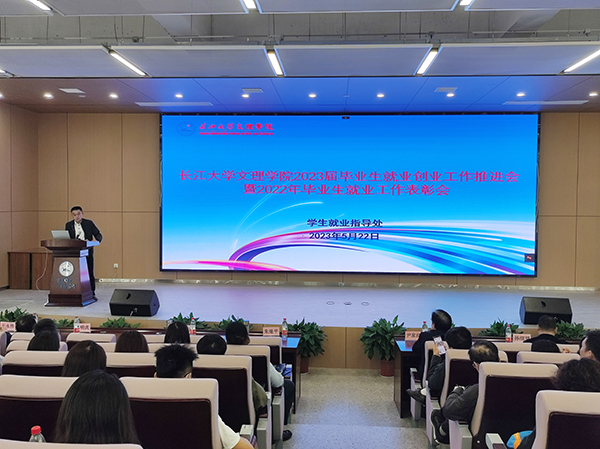 本网讯 (记者 天一)5月22日下午,2023届毕业生就业创业工作推进会暨2022年毕业生就业工作表彰会在学术报告厅举行,学院领导朱继平、尹家经、康建虎、孙细望、曹骥、郭明虎出席活动,党委副书记于永伟主持会议。