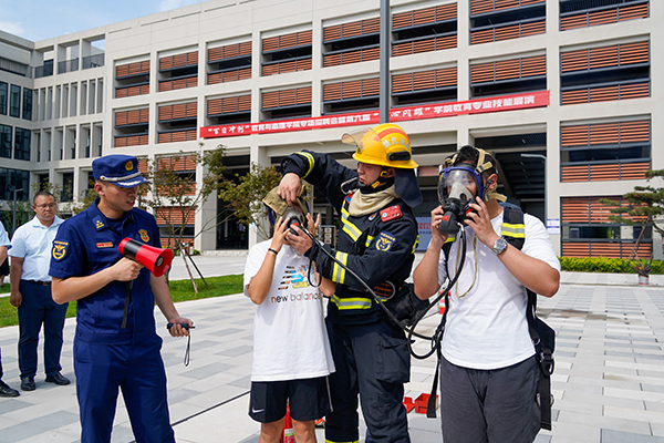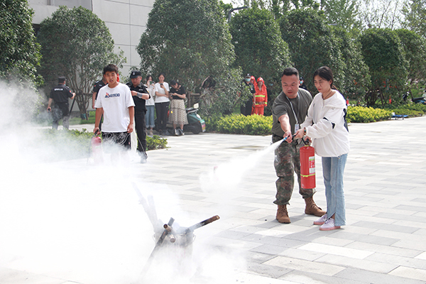 消防人员向全体师生展示了如何急救伤员和消防车运作过程,同时讲解了干粉灭火器的使用方法,指导学生亲手体验灭火器的使用方法和技巧,演练现场气氛活跃,学生们踊跃参与。