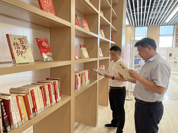 活动在诗歌朗诵《党在我心中》中拉开序幕。机关三支部全体党员满腔热情在齐诵中歌颂中国共产党百年征程的波澜壮阔,展现百年初心的历久弥坚。副院长尹家经、孙细望,院长助理郭明虎带领机关三支部党员在图书馆党建中心参观学习。