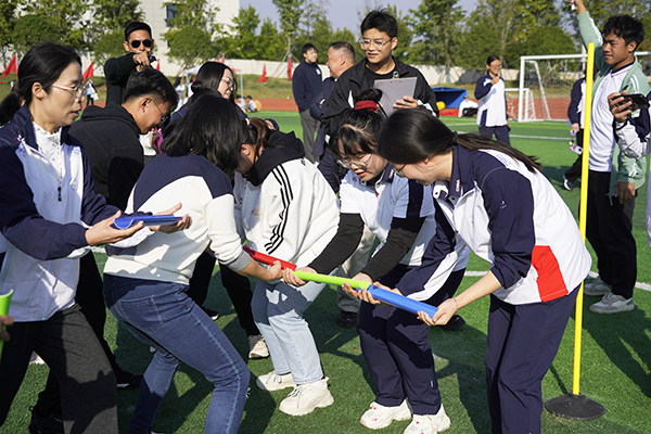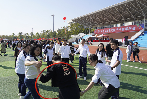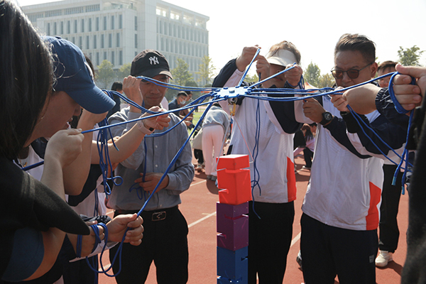 本网讯 10月25日上午,学院工会在新校区田径场举办教职工创编项目比赛。来自全院12个工会小组的400多名教职工积极报名参赛。此次比赛设有合力搭塔、珠行万里、车轮滚滚、一圈到底、神笔马良等8个集体项目,设一二三等奖。赛场上,选手们发扬拼搏精神,展现出共同协作的团队精神和积极向上的精神风貌。