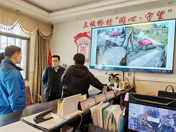 会议召开前夕,颜建洲深入石柱山村调研乡村振兴工作,渔洋关镇联村领导周艳、石柱山村“两委”班子成员及学院驻村工作队参与调研。调研组实地考察了学院前期援建的水源修复及管网改造工程,赴三板桥村村委会对今年要实施的建设项目“同心守望”智慧养老平台进行了现场观摩。在石柱山村农副产品展销中心,颜建洲详细了解了目前的运营情况后,对下一步的工作进行了现场指导。