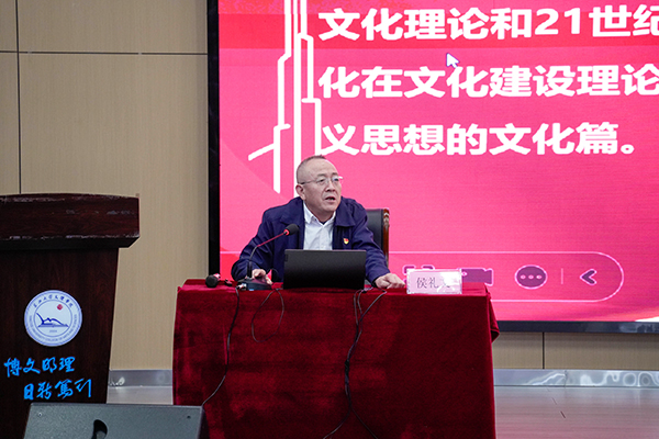 报告会由党委书记颜建洲主持。侯礼文以习近平文化思想为主题,从习近平文化思想提出的时代背景、习近平文化思想的丰富内涵及理论特征、习近平文化思想的战略意义三个方面系统讲解了习近平文化思想,主题突出、逻辑严密、阐释精辟,对于学校领导干部坚定文化自信,坚持立德树人根本任务,培养堪当民族复兴大任的时代新人,具有重要的指导意义。