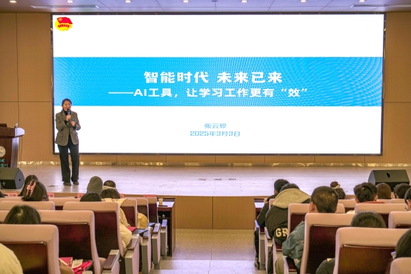 本网讯 3月3日晚,我院团委组织“悦学习 跃青春”第七期“青马”工程培训班学员在B-112学术报告厅开展专题讲座。荆州职业技术学院高级工程师、团委副书记张云婷以“智能时代 未来已来”为题,解锁智能办公时代的“通关密码”。本次讲座由青马班班主任李天赐主持,团委全体老师、“青马”学员和团属组织的学生骨干共计两百余人参加。