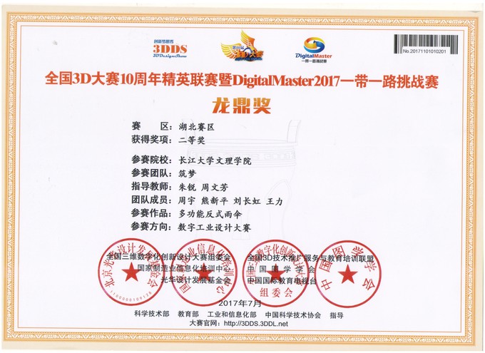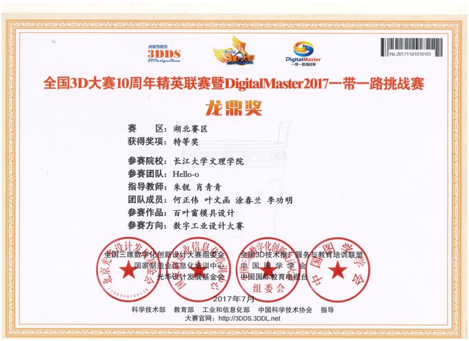 本次大赛由国家制造业信息化培训中心、光化设计发展基金会等单位主办,国家制造业信息化培训中心3D办、克拉玛依市科协等单位承办。共有来自全国203所高校的230支代表队参加。另外,在全国三维数字化设计大赛湖北赛区的比赛中,机电与信息工程系组织2支队伍参赛,获数字工业设计大赛湖北省赛特等奖1项,二等奖一项。
