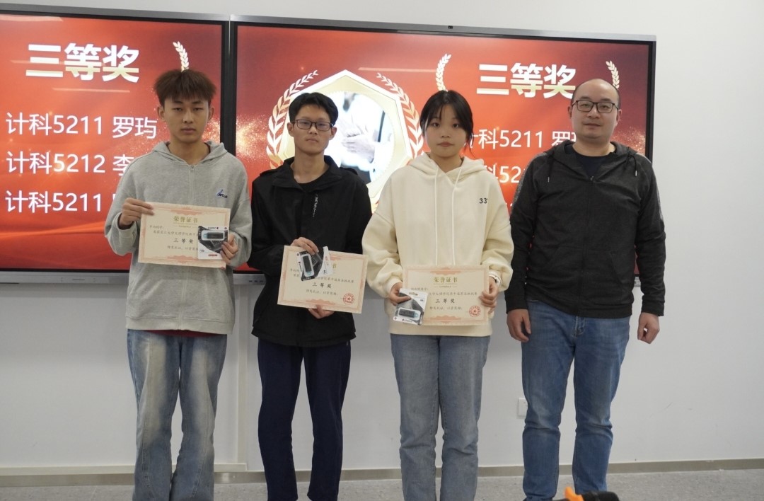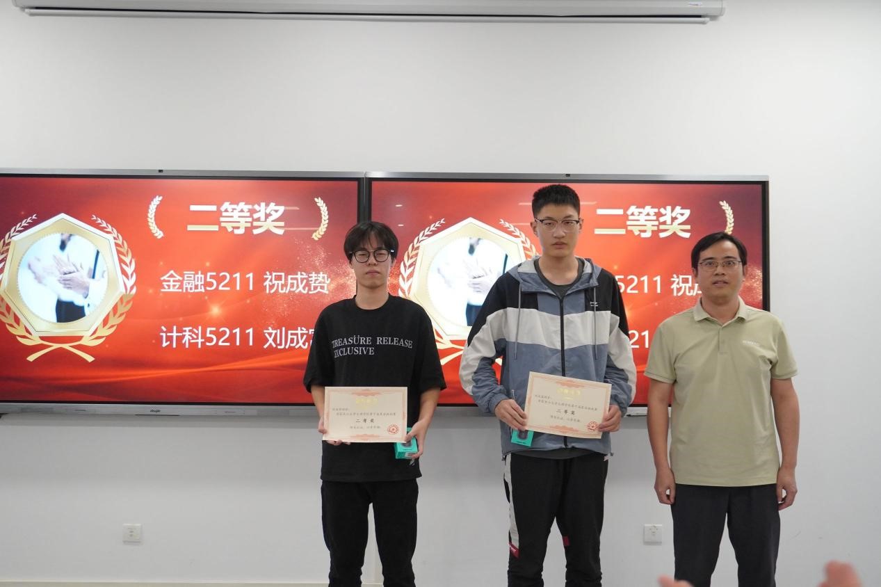 根据竞赛实施办法有关精神,经笔试、机试、教师指导组评审、会议研究等程序,最终成绩揭晓:敖屹同学荣获一等奖;祝成贽、刘成富同学荣获二等奖;罗玙、李向阳和胡启明荣获三等奖。随后院领导为获奖学生颁奖。