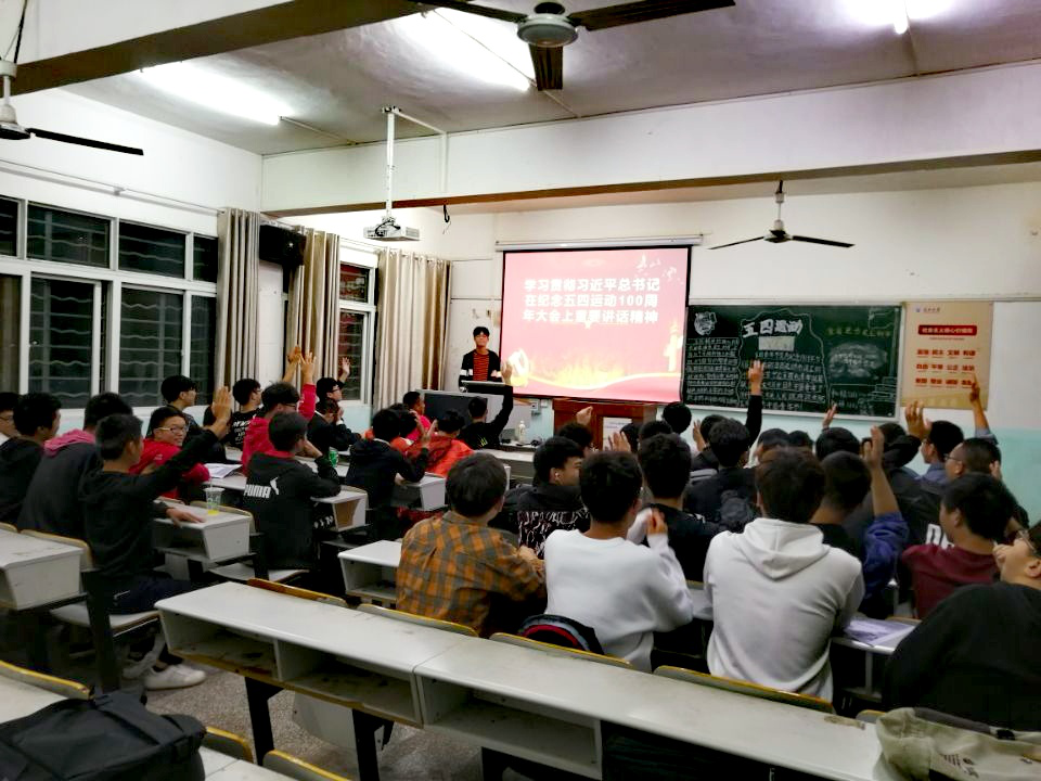 本网讯(学生记者刘瑞华)5月14日晚,在西校区各自习室,我系各班开展以“学习贯彻习近平总书记在纪念五四运动100周年大会上重要讲话精神"主题团课活动。活动由各班团支书主持,全班成员一同参与。