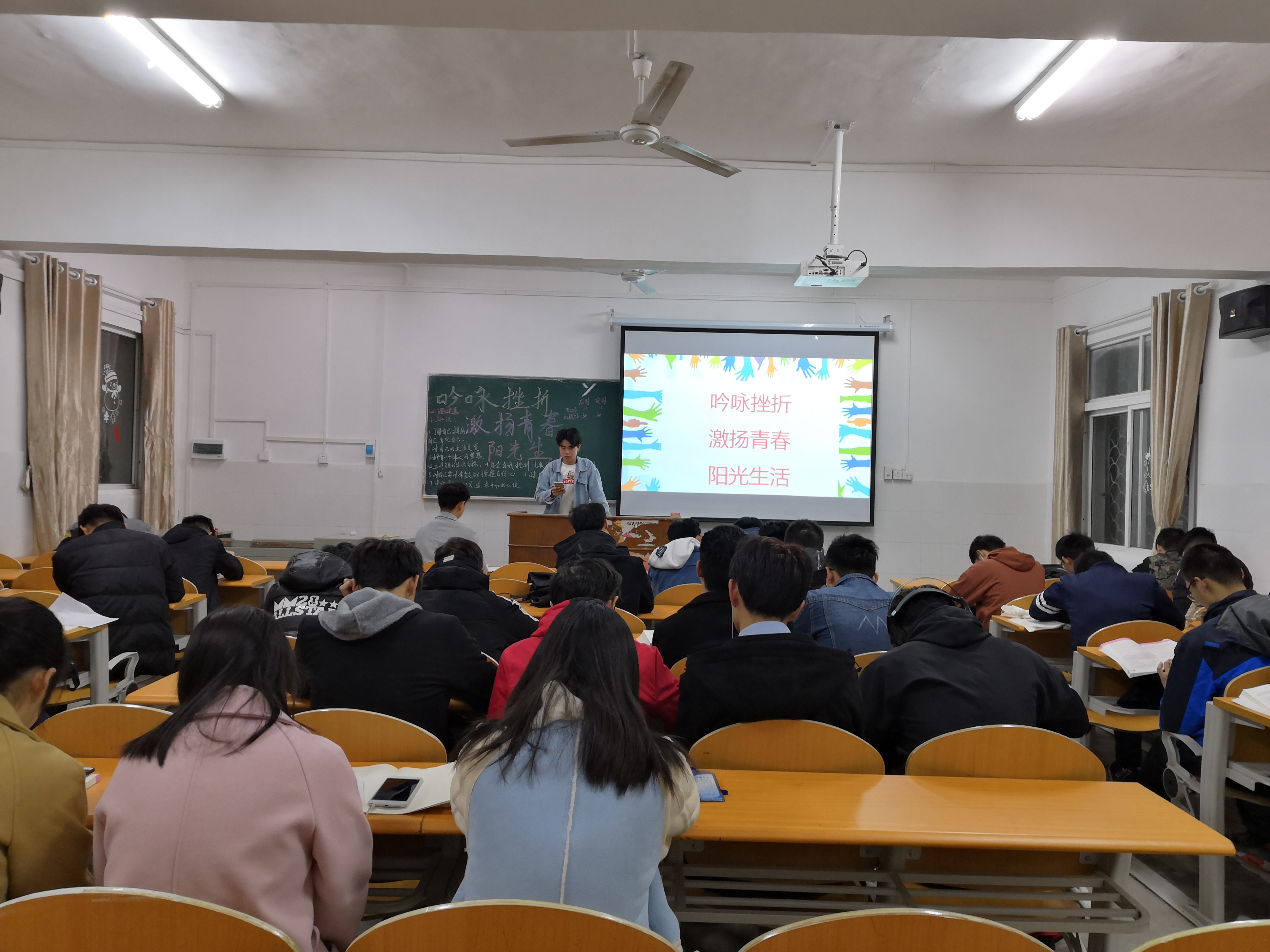 本网讯(学生记者孙文静)3月21日,我系各班开展以"吟咏挫折,激扬青春,阳光生活"为主题的团课,希望通过此次学习让同学们加强个人心理素质,促进彼此交流。
