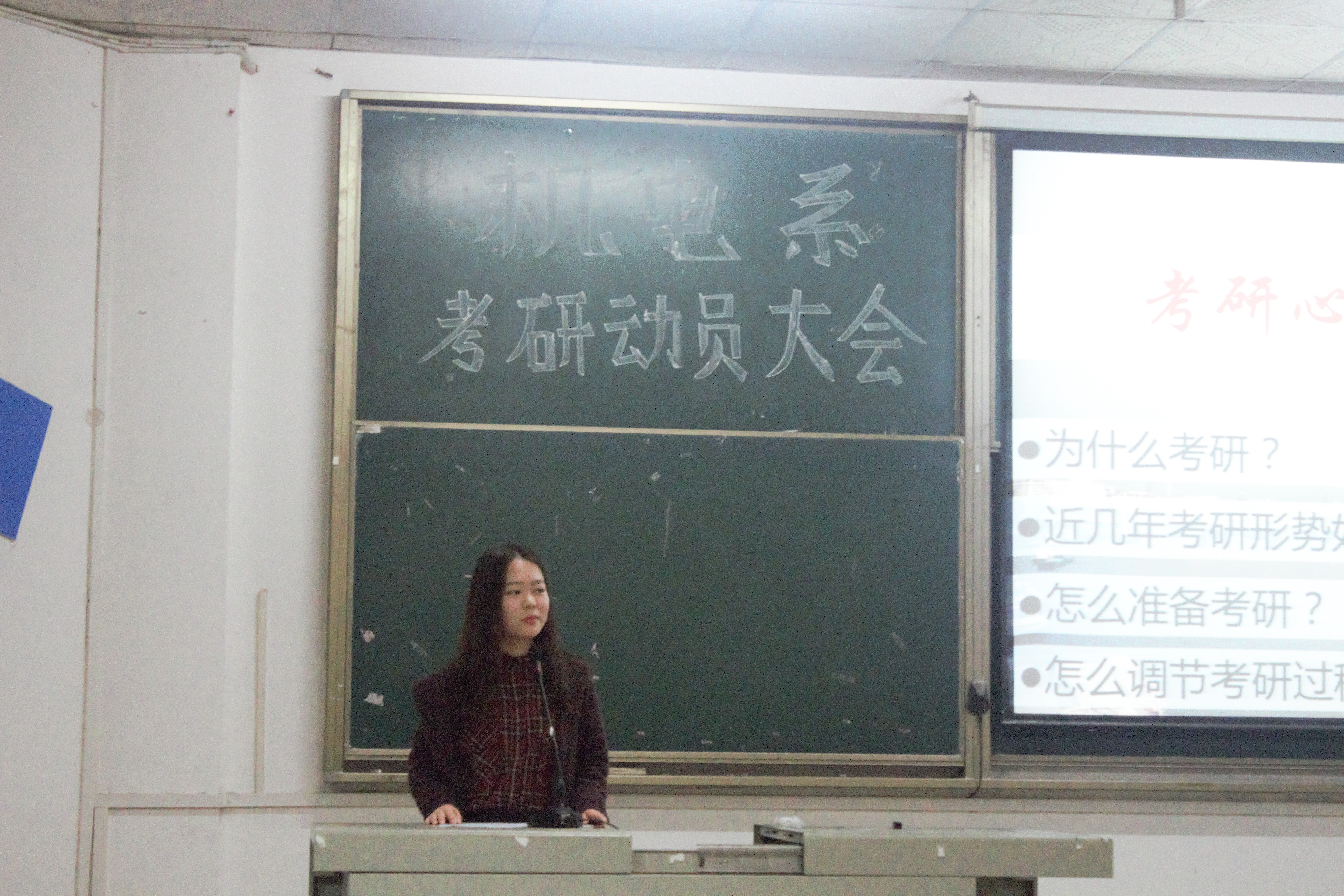 会上,我系辅导员李辉老师作动员报告,“国家奖学金”和院“十佳大学生”获得者、2018届优秀毕业生颜丽君同学分享考研心得。