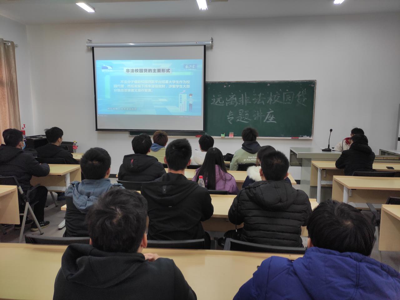 讲座上,主讲人结合近年来各高校“非法校园贷”的真实案例,从“非法校园贷的特点”、“非法校园贷的风险和危害”和“非法校园贷的主要形式”三个方面,向同学们详细讲解了非法校园贷先以放贷门槛低的方式诱骗在校大学生借款,后采用骚扰、恐吓、威胁甚至暴力手段催逼还款的套路,同时受害者还将面临超高利息、骚扰威胁、个人信息泄露等风险。随后,主持人告诫同学们不要有虚荣和攀比心理,在借款之前一定要三思而后行,避免陷入“非法校园贷”的陷阱。