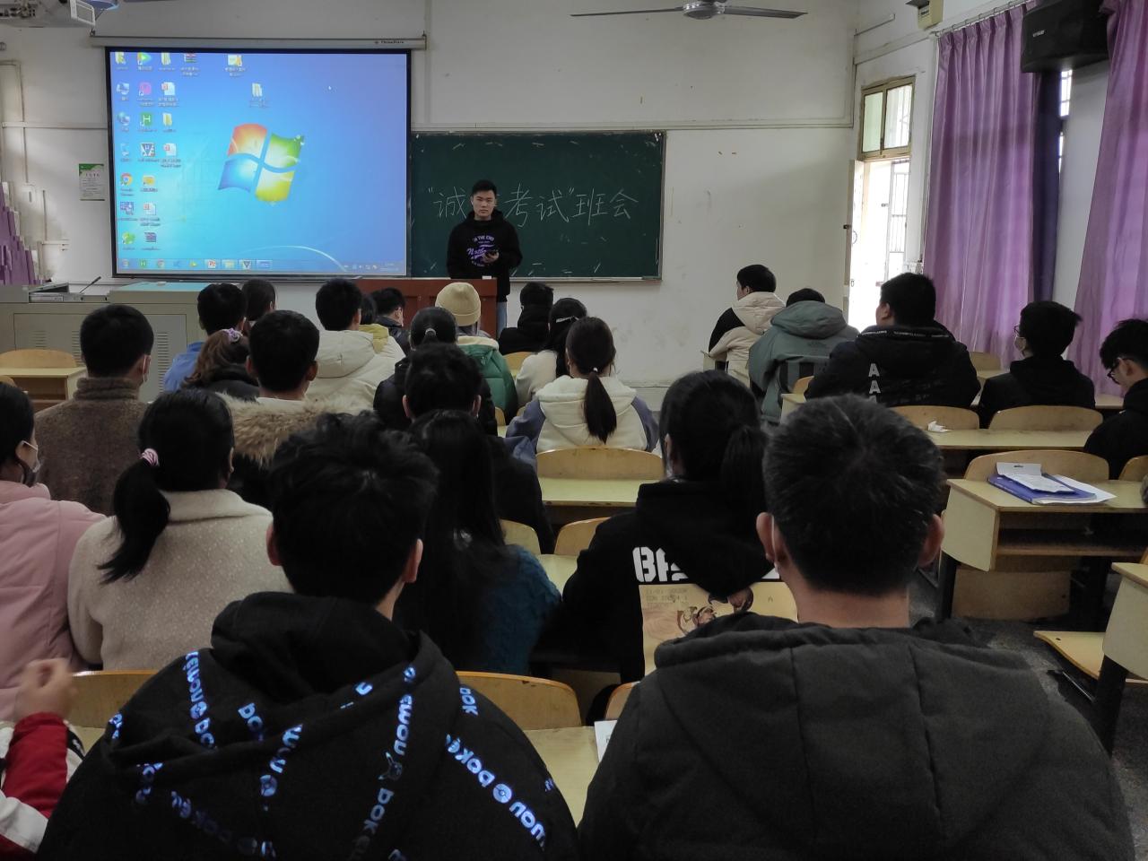 本网讯(学生记者 黄懿萱)四级考试临近,为加强诚信考试教育,使同学们更好的了解大学生英语四级考试规则。12月10日晚,在西校区各班自习室,我系开展大学生英语四级诚信考试主题班会。班会由各班班长主持,班级全体同学参加。
