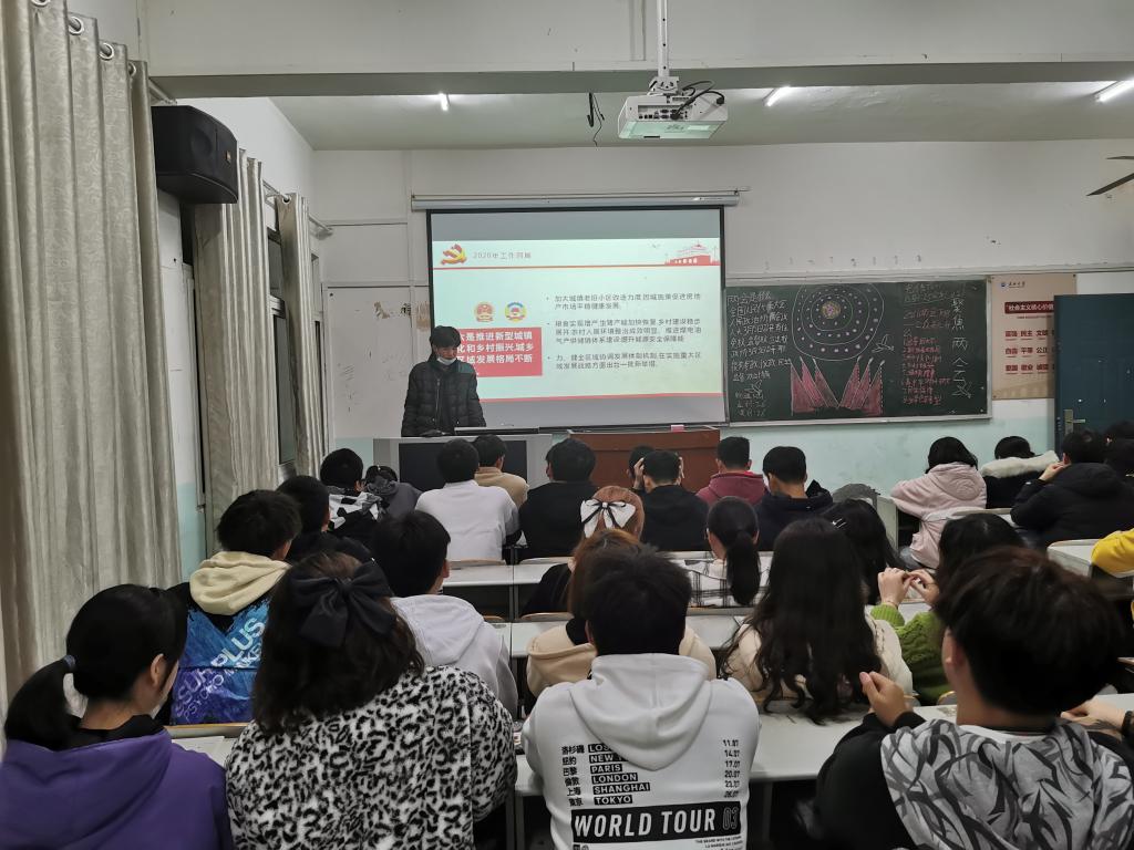 团课上,主持人通过PPT与视频放映,围绕两会精神,向同学们系统介绍了我国擘画新阶段的发展方向与路径,详细阐述有关“十四五”开局规划和2035年远景目标以及“三农”工作重心的转移。随后,同学们依次分享了自己对两会精神的认识和理解。会议结尾,主持人进行总结,并希望青年大学生要体会领悟国家的大政方针,肩负责任,凝聚力量,为贡献社会打造基础,为创造价值筑牢基石。