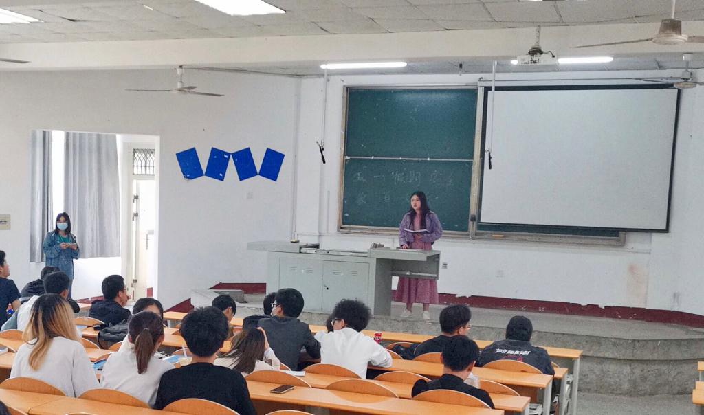 本网讯(学生记者 曲孝佳)为提高同学们的防患意识,确保同学们的假期安全,4月30日中午,我系各班开展“五一”假期安全教育主题班会。班会由辅导员主持,班级全体同学参与。