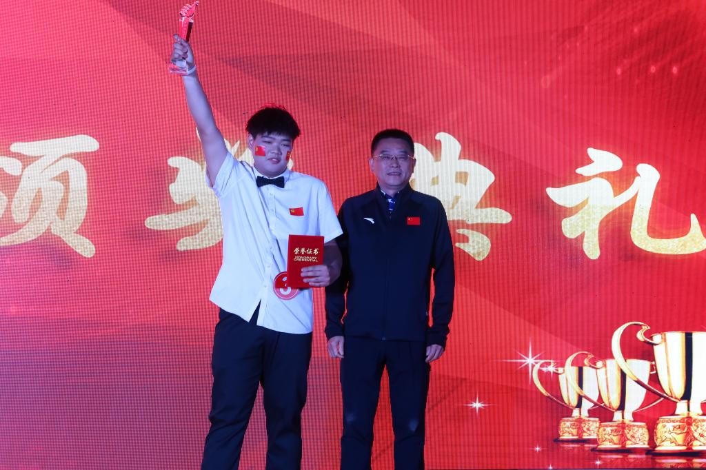 朱继平(右)为一等奖获得者颁奖