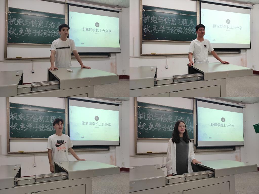 本次分享会特别邀请学院第六届“十佳大学生”获得者计科5171班李林轩、学科竞赛国家级奖项获得者机械5171班区汉铭、以及成功考取长江大学研究生的计科5171班熊梦园和物联5171班孙甜分别在学习、学科竞赛和考研方面进行经验分享。