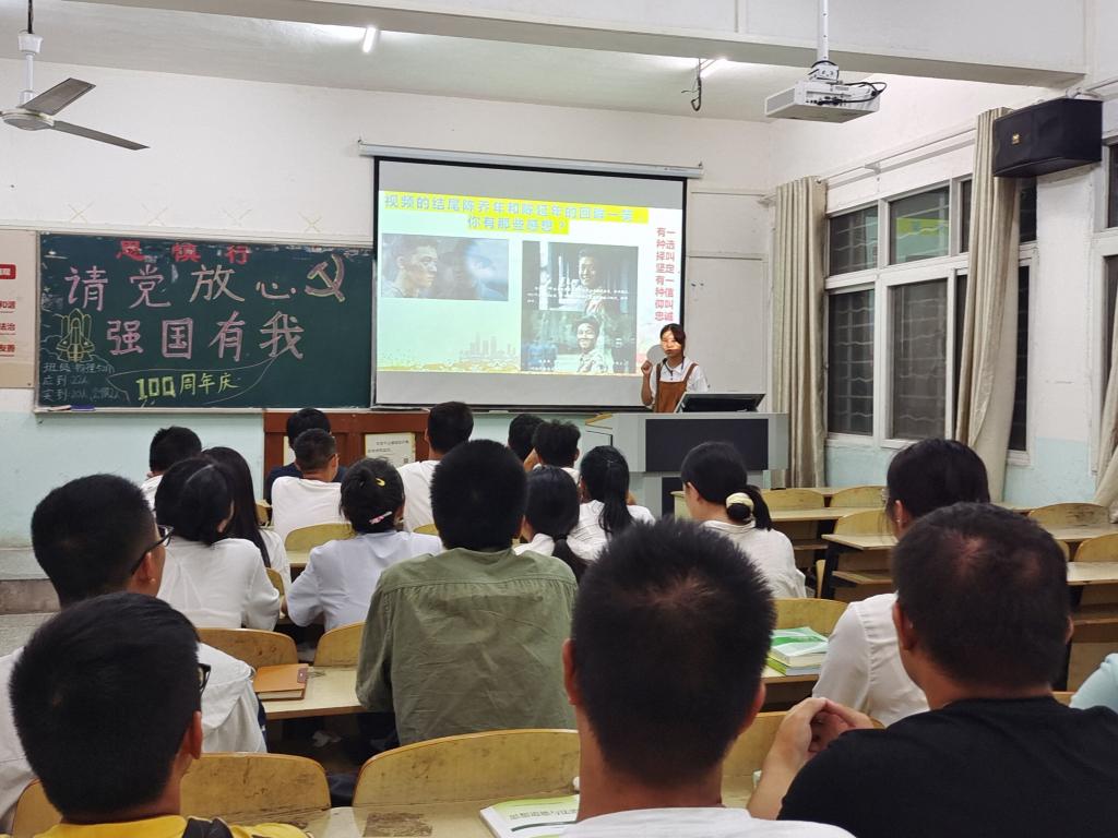 团课开始,主持人通过播放视频和PPT,以“学习百年党史,增强历史自觉”、“高举真理旗帜,感悟思想伟力”为中心,阐述了青年力量在民族复兴中起到的关键作用,对建党精神进行了深入剖析。随后,主持人以“如何继承先辈遗志,促进中华发展?”为题,邀请同学们上台发表感想,并进行总结。他讲到:“作为青年大学生,我们应当勇于担当复兴中华的使命,坚持真理,坚守理想,践行初心,为祖国的建设奉献力量。”