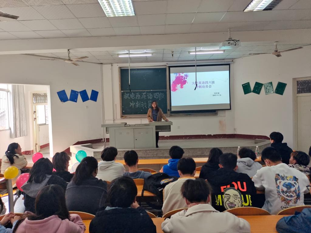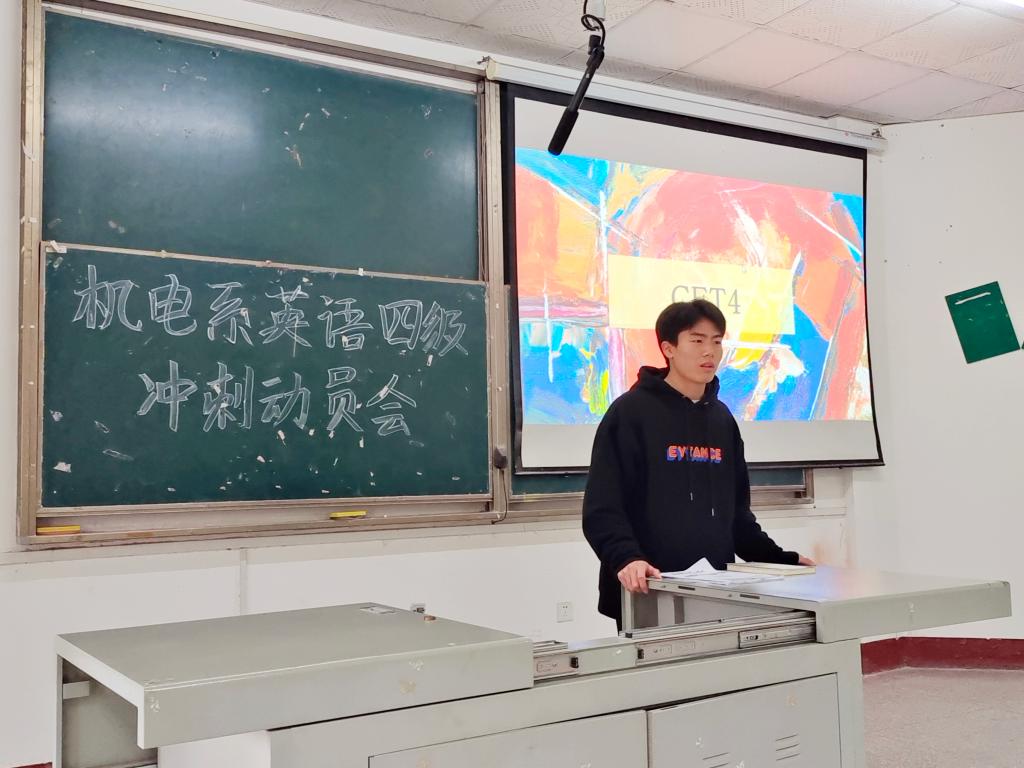 本网讯(学生记者 杨政政)11月19日,在西校区四教200教室,我系开展英语四级冲刺动员会。会议由秘书处朱佩欣主持,特别邀请机械5191班黄培森分享备考经验,系辅导员燕梦蝶出席,2020级全体学生参加。