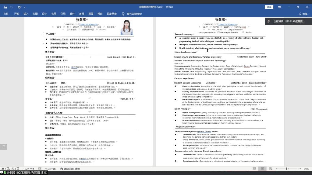 本网讯(学生记者 曲孝佳)为培养毕业生求职技能,提高就业率,结合当前疫情防控形势,本月我系以线上学习的方式开展就业培训及简历制作大赛系列活动。活动由武汉贝壳校园招聘部经理李文静主持,辅导员燕梦蝶出席,我系2022、2023届毕业生参加。