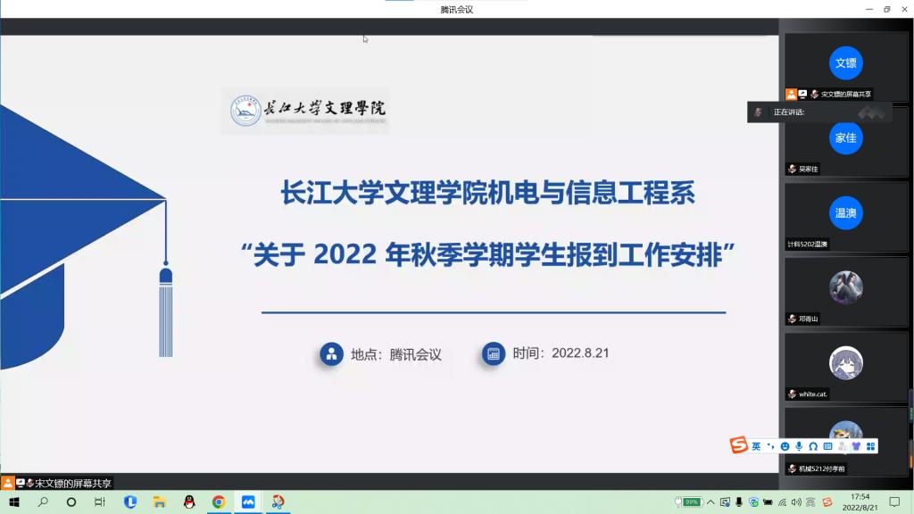 本网讯(学生记者 张楠)8月21日,在腾讯会议平台上,我系召开秋季学生返校工作安排班会。