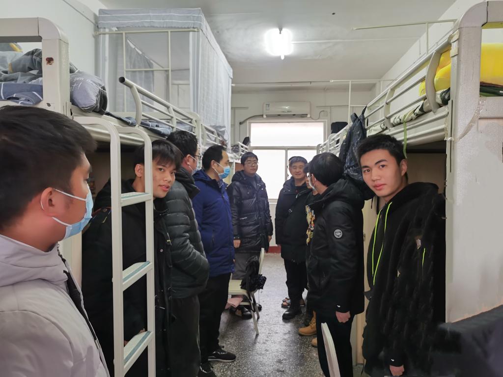 走访过程中,院系领导与同学们进行了亲切交谈,详细了解同学们寒假期间的身体健康状况与学习生活情形,并询问同学们返校后的适应情况。他们希望同学们积极调整心态,科学制订学习计划,保持一个良好的生活作息和精神风貌。同时领导们还叮嘱同学们要遵守疫情防控要求和宿舍规章制度,注意用电安全,妥善保管个人财物,做好卫生管理,保障宿舍整洁。此外,院系领导鼓励同学们要勇于表达自我,展现自身特长,积极参与各项学科活动,在德智体美劳各方面全面发展。