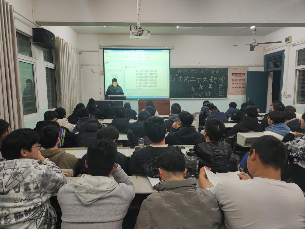 本网讯(学生记者 郭文静)近日,我院开展“围绕理想、担当、奋斗、青春4个篇章进行分享,生动阐释党的二十大精神”主题团课。团课由各班团支书主持,班级全体同学参加。