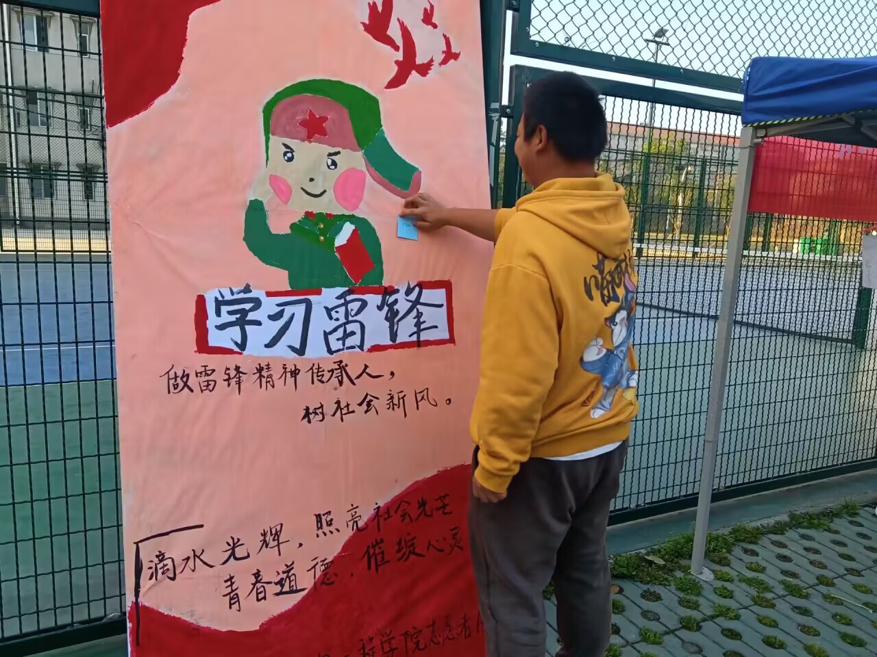 在志愿者的组织下,同学们在便签上写下一句句深情的告白、一段段真挚的感言,书写对雷锋精神的感悟和身边一个个“小雷锋”们的暖心事迹。不同的字迹承载着不同的赤诚之心,一笔一画皆是同学们的所感所思。留言板上,纸短情深,句简意远。