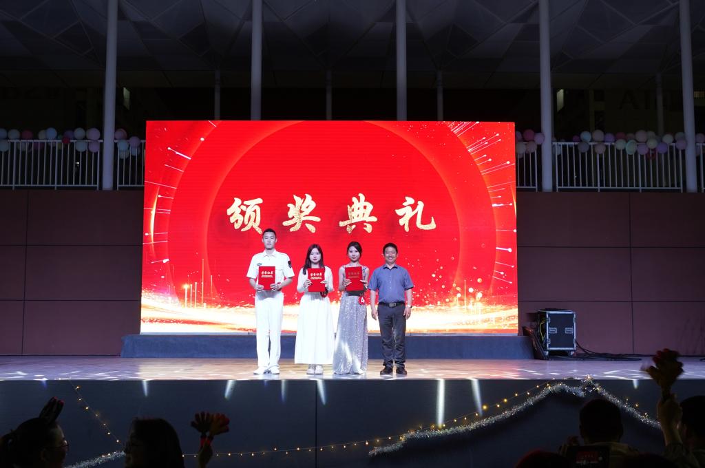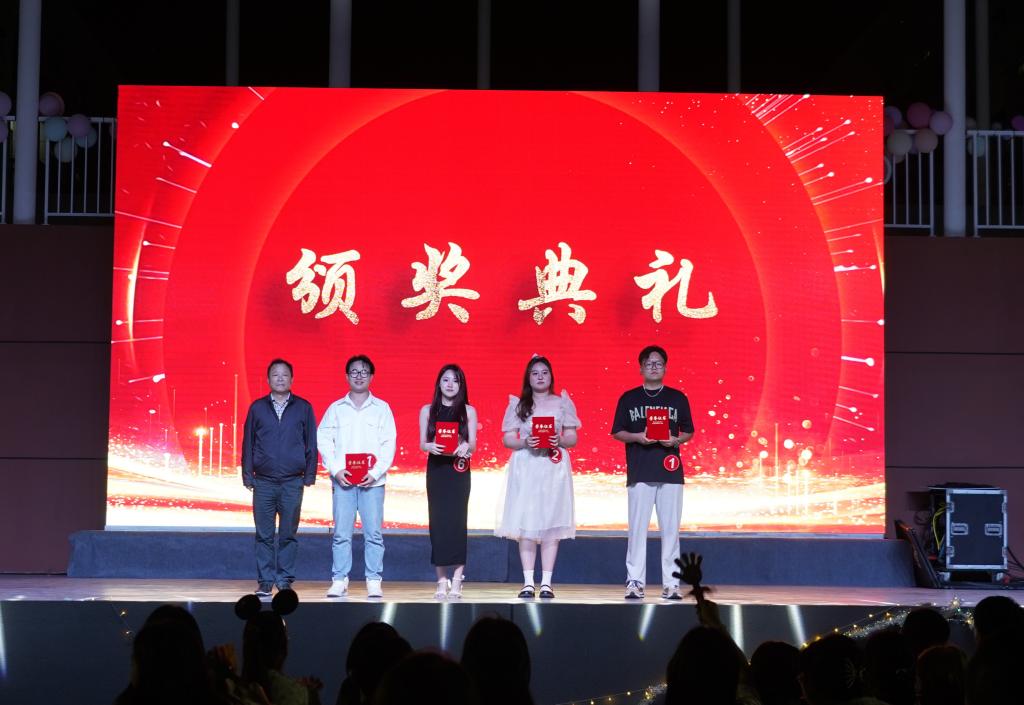 最后,评委老师对各位选手的表现进行了点评,指出各位选手的优点与不足,对优点给予肯定,对不足提出建议。院长王文凯、党委书记朱继平、副院长康建虎上台为本届校园歌手大赛获奖选手颁奖,与选手们一同合影留念。