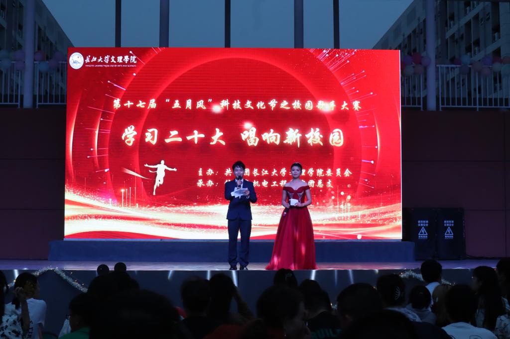 本网讯(学生记者 黄盼盼)5月29日晚七点,在新校区田径运动场,由我院承办的第十七届“五月风”之校园歌手大赛决赛正式拉开帷幕。院长王文凯,党委书记朱继平,副院长尹家经、康建虎,院长助理郭明虎出席活动,各职能部门、教学单位负责人与三百余名师生共同观摩比赛。长江大学艺术学院音乐系主任朱波,williamhill官网学工部部长李刚英、教育与心理学院鲁婷担任评委。李毅、赵子衿两名同学负责主持。