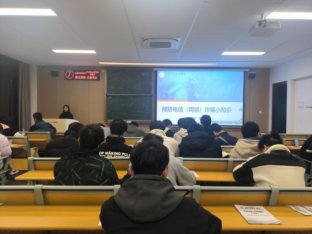 班会开始,辅导员通过PPT向同学们介绍了电信诈骗的概念、常见类型、预防手段等内容,通过一个个真实存在的案例来介绍假冒客服等电信诈骗形式,让同学们切身感受电信诈骗的潜伏性和危害。班会还邀请了一些成功防范诈骗的同学分享他们的经验和心得,帮助其他同学更好地理解和掌握防诈骗的方法。