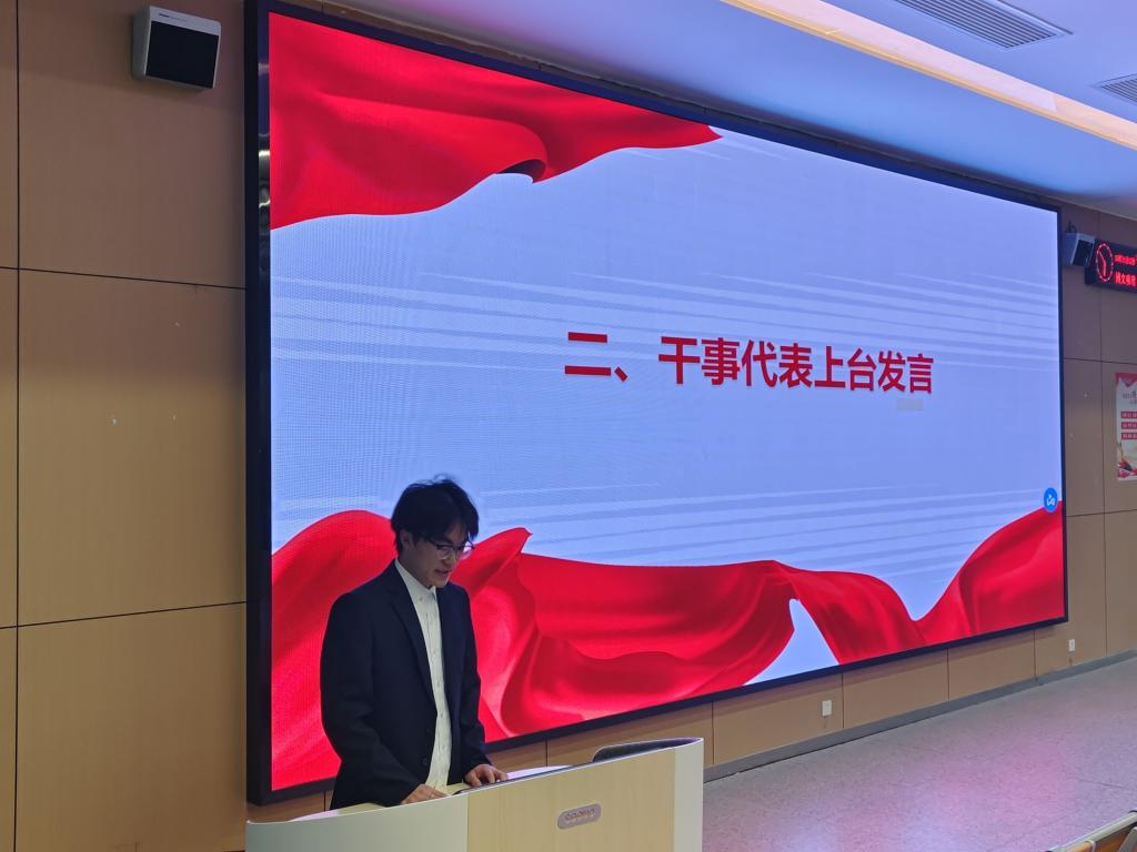 会议开始,学生会干事代表王振强和部长代表王晓羽依次上台发言,他们分享了学生会工作期间的学习经历和宝贵收获,并对全体成员的辛勤付出表达了感谢。随后,学生会副主席王艺果汇报了本学期的工作计划,她提出要进一步加强学生会队伍建设,提高成员的综合素质。党总支副书记王大专老师聆听了汇报,他对学生会的工作表示了认可和赞扬,同时指出了学生会现阶段工作出现的一些问题,他强调学生干部做好工作的同时也要以学习为重,积极参加学科竞赛,此外,他提出“核心条件优化,争先创优”的方针,要求学生全体成员在以后的工作中一定要按照具体的工作任务,一步一步脚踏实地完成。